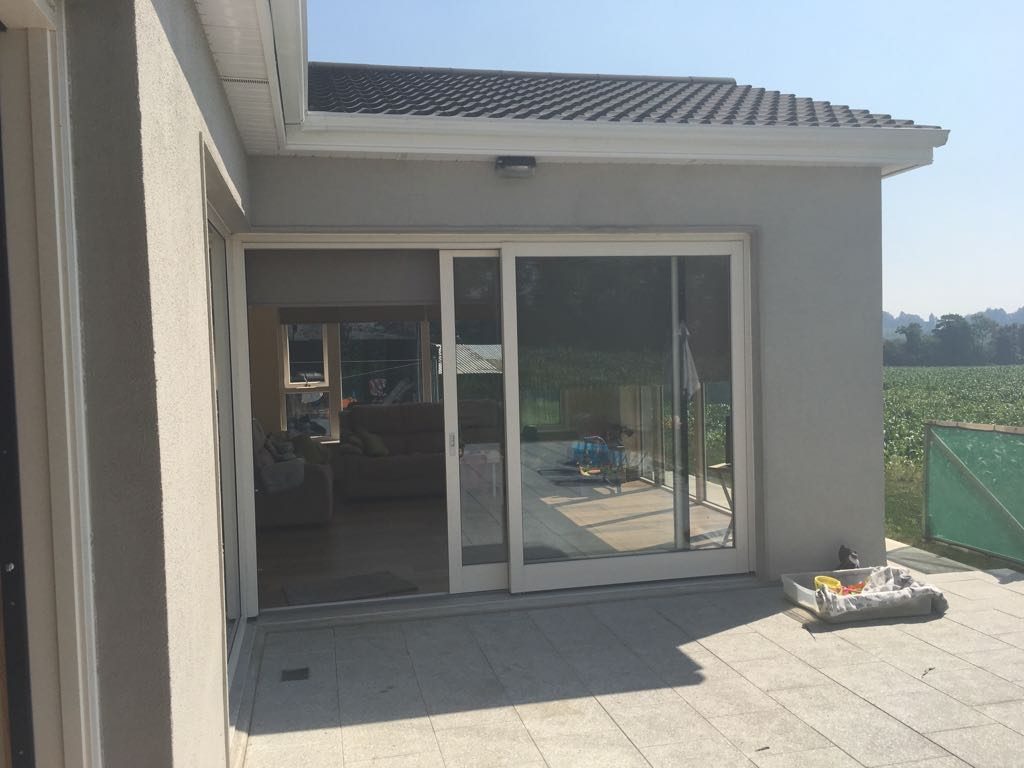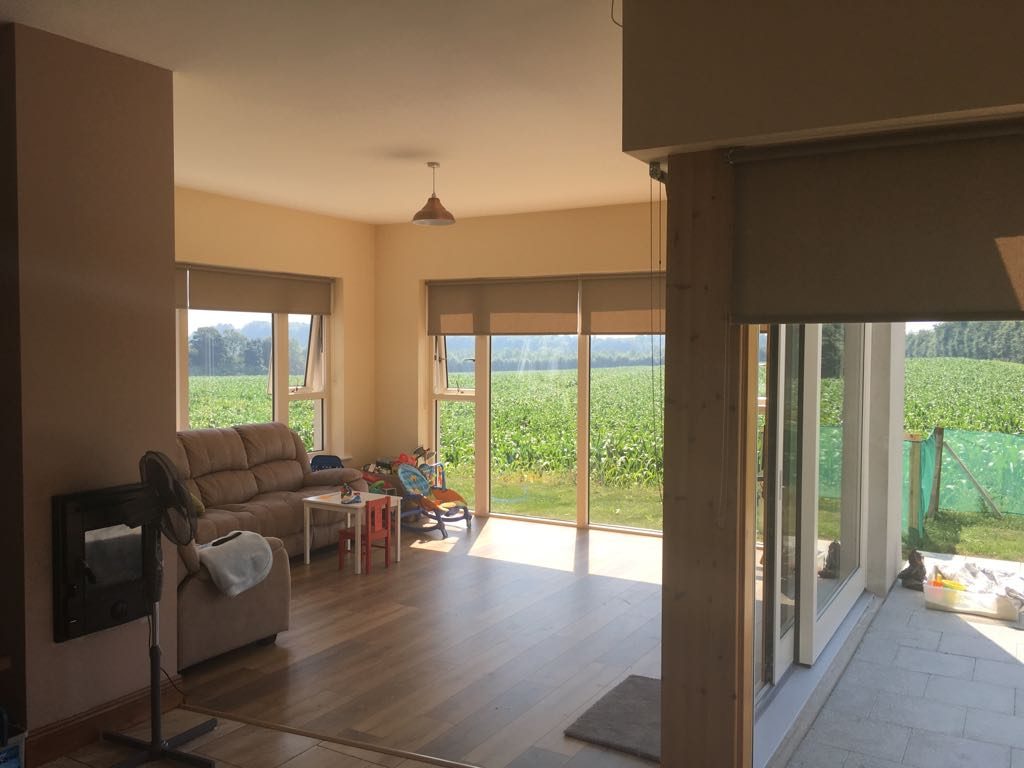The existing building was completely gutted with new insulated concrete floors fitted throughout, full re-wire and re-plumb was carried out & was internally insulated with a metal stud dry lining system with airtight membranes installed. New Alu-clad windows & doors were fitted and all wall & floor finishes were carried out including painting and tiling.